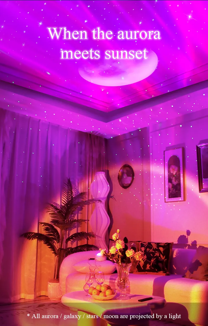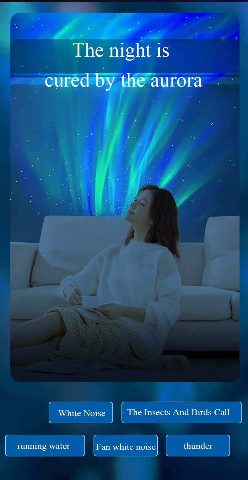 2023 New Double Effect Northern Lights Projector Lamp Milky Way Atmosphere Lamp Starry Sky Lamp White Noise Projector Lamp With Rometes