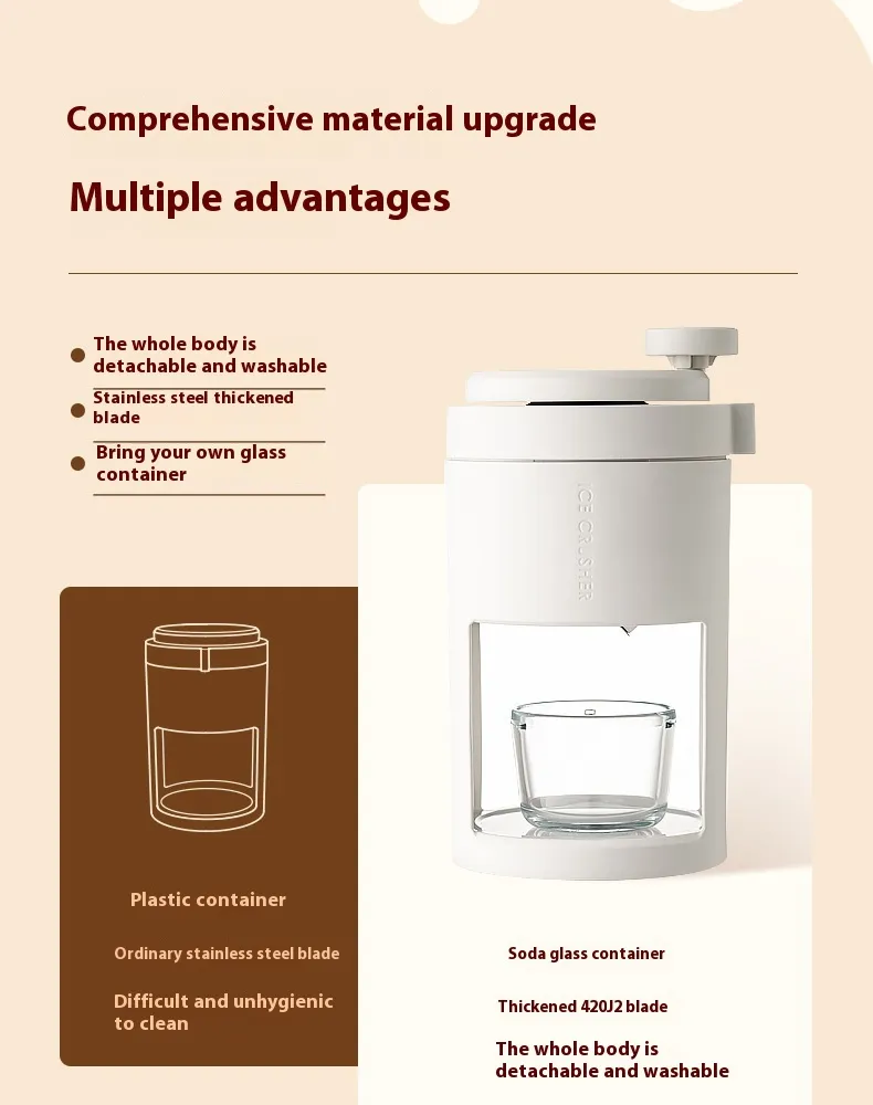 🧊 Enjoy freshly crushed ice anytime, anywhere with our Ice Machine Crushed Ice maker! Removable parts ensure easy cleaning for a safe and rapid ice-shaving experience!