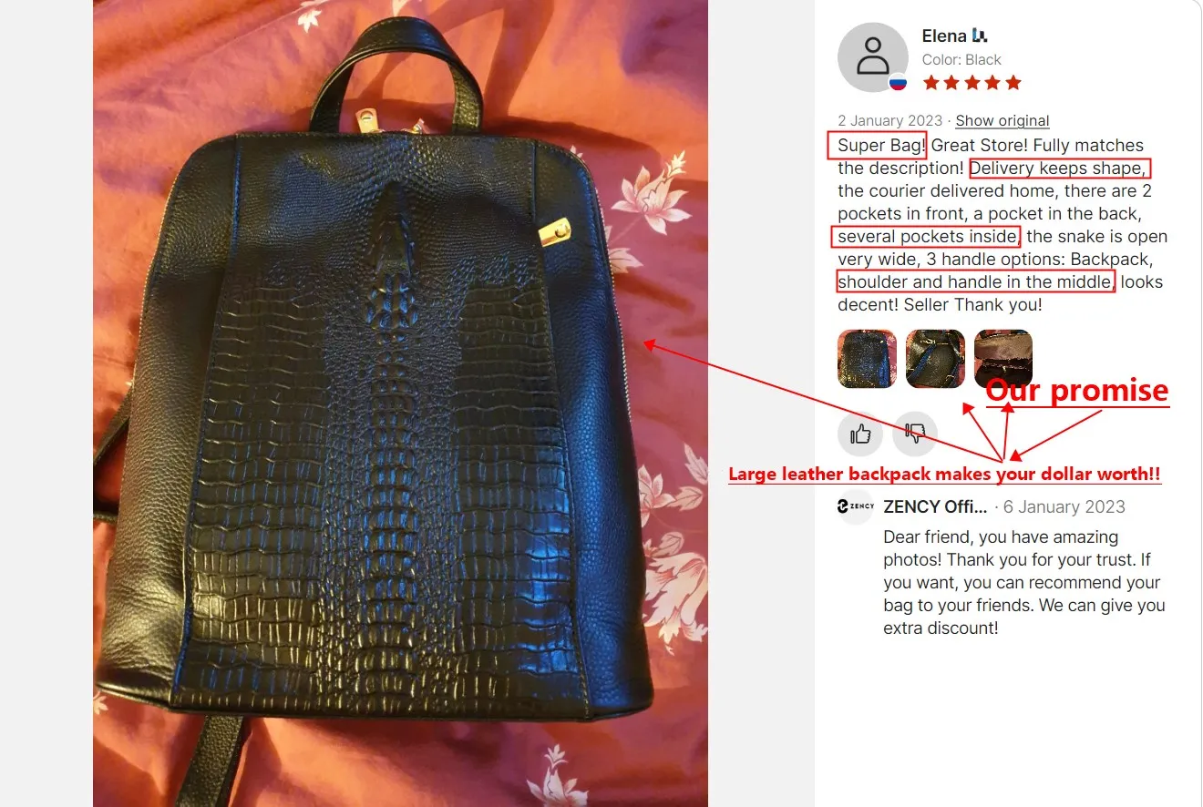 Structure: 1 main zipper pocket,1 interlayer zipper pockets, 1 inside slot pocket, 1 back zipper pocket, 1 front zipper pocket