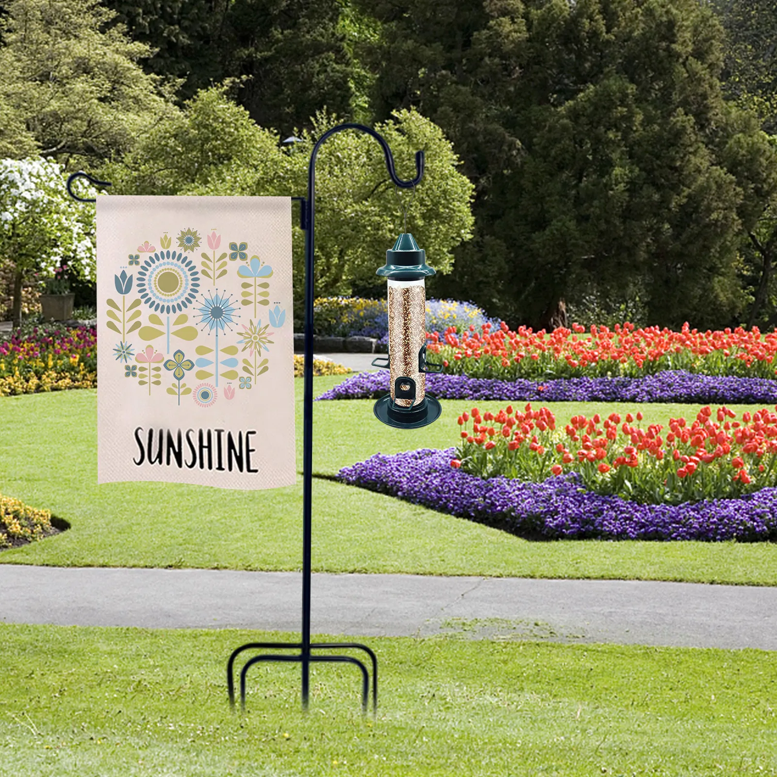 Simply place the shepherd hook into the ground by pushing it into the soil. The sturdy metal construction ensures that the hook remains secure even in windy conditions.