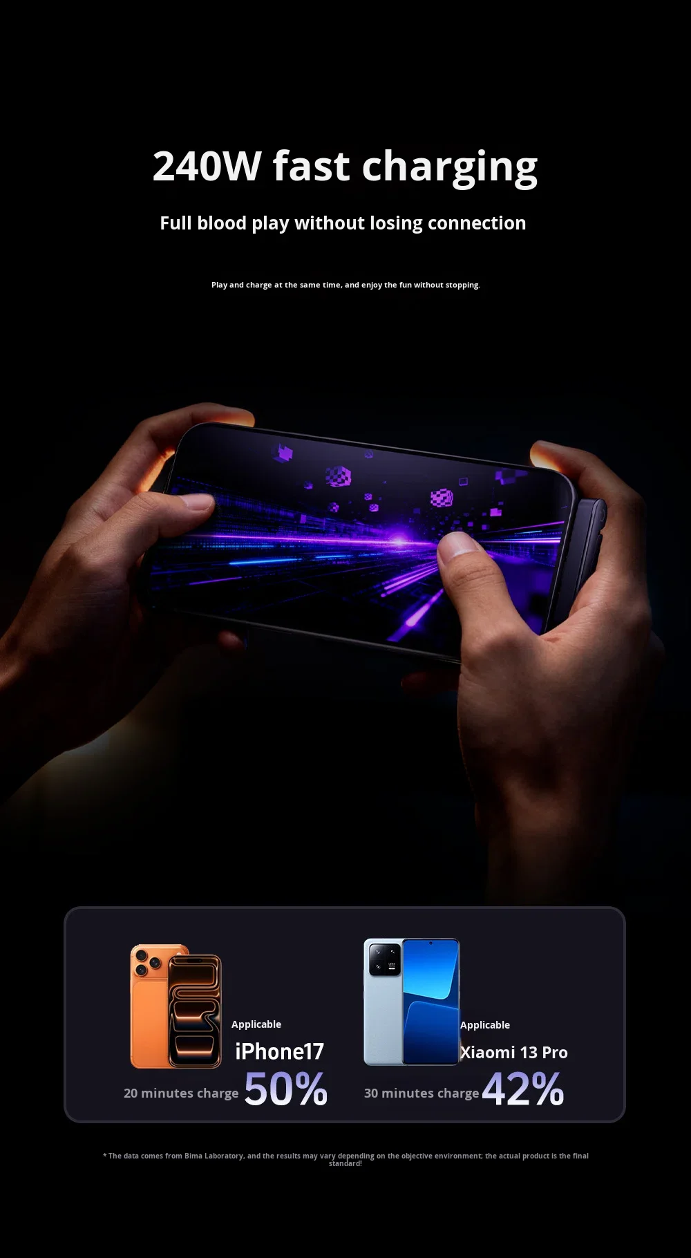 Supports ultra-fast 240W charging, ensuring your devices are powered up quickly and efficiently.
