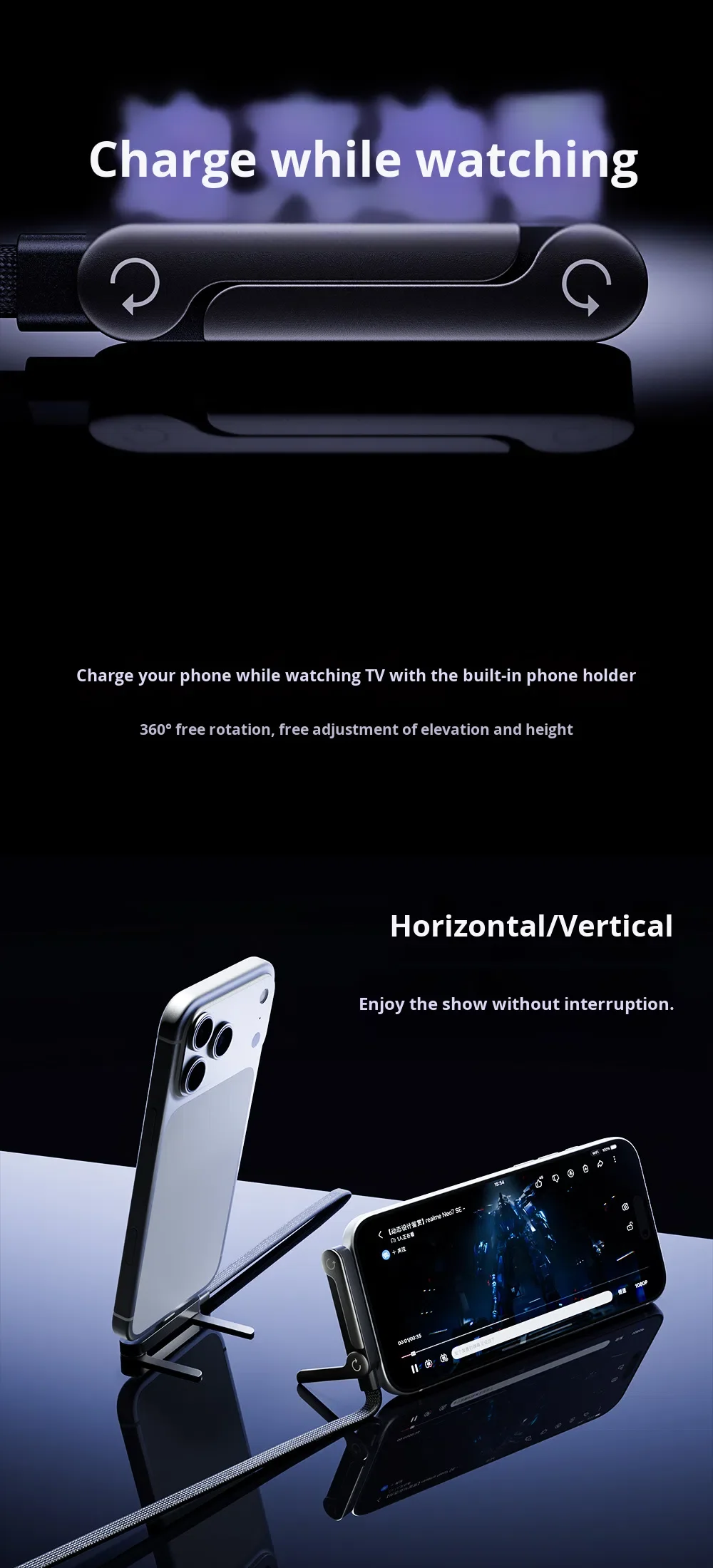 The hidden bracket on the charging head seamlessly supports your phone for hands-free viewing. Conceal wires effortlessly, mount securely, and free your hands for uninterrupted productivity in one innovative design.
