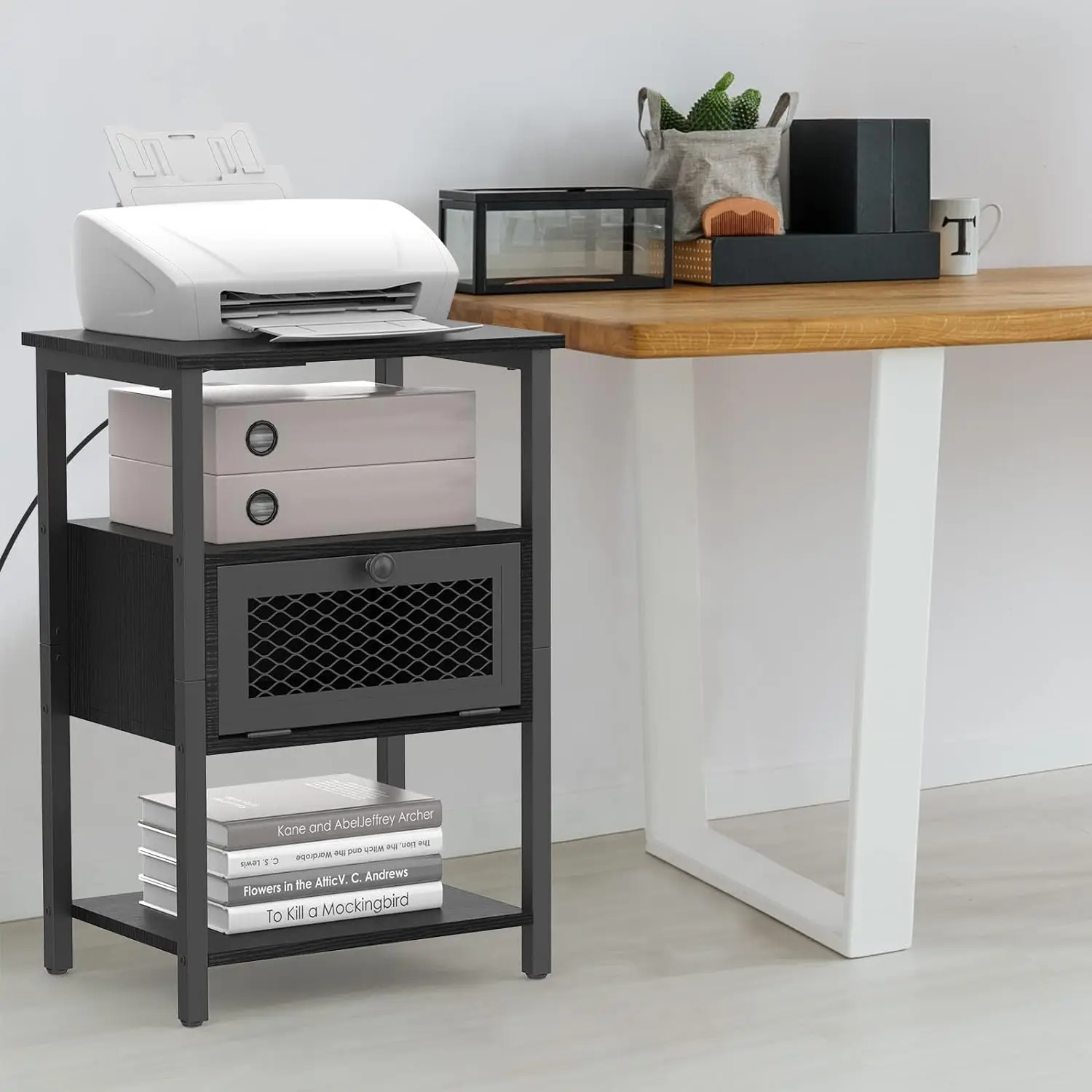 2PCs Modern Nightstand End Table - Side Table with USB Ports, Storage Drawer, and Bedside Table