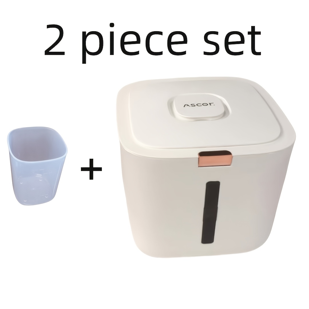 2pcs Rice Bucket + Measuring Cup Home Rice Storage Container – Insect and Moisture Proof Sealed Rice Tank, High-End Rice Box, Suitable for Cat Food, Dog Food, Rice, Flour, Beans