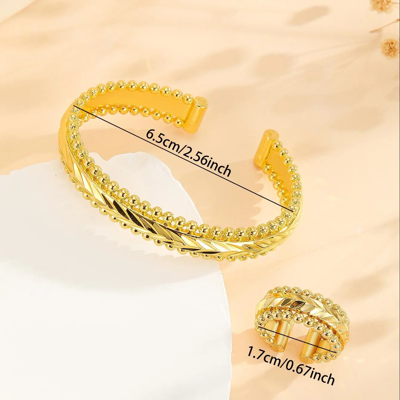 2pcs Vintage Gold Plated Bracelet, Open Bracelet Ring Jewelry, Women's Festival Wedding Jewelry Set
