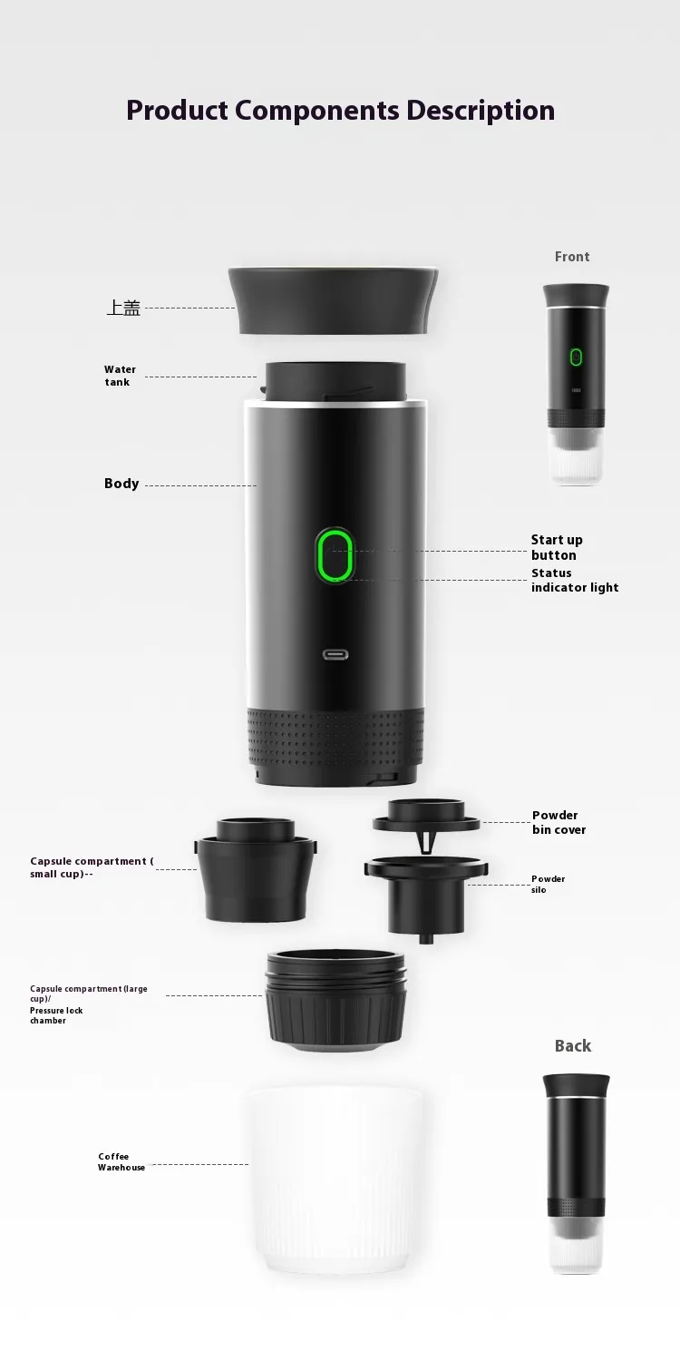 【Intelligent Extraction】Portable espresso machine adopts an intelligent heating function,and convenient extraction, double-click the