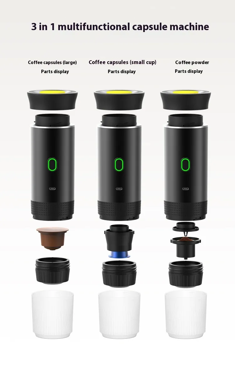 【Multi-compatible】The 3-in-1 portable espresso machine is equipped with a ground coffee compartment and a capsule compartment, which is