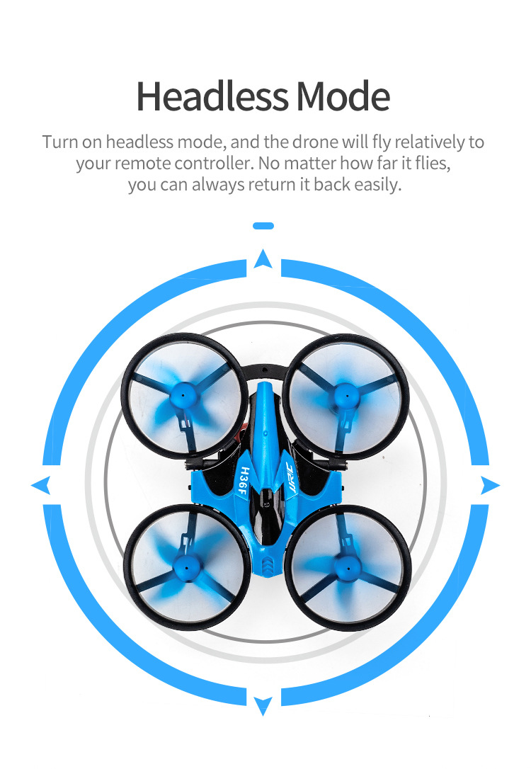 Equipped with one-button takeoff/landing and altitude hold, the drone ensures smooth and stable flights, even for beginners. Its land mode transforms it into a mini race car, while water mode allows it to float and move across the water's surface, adding an extra dimension to outdoor fun. LED lights enhance visibility during night flying, and 360-degree flips bring dynamic action to every session.