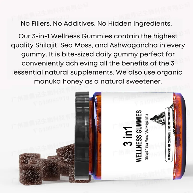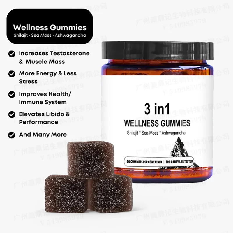 3 in 1 Wellness Gummies with shilajit sea moss and ashwagandha designed to support daily energy vitality and wellness.