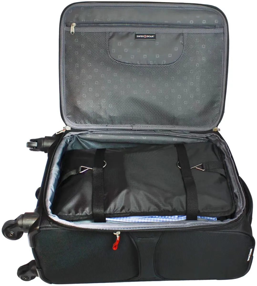 This compartment system helps keep clothing separated and prevents garments from shifting during transport.