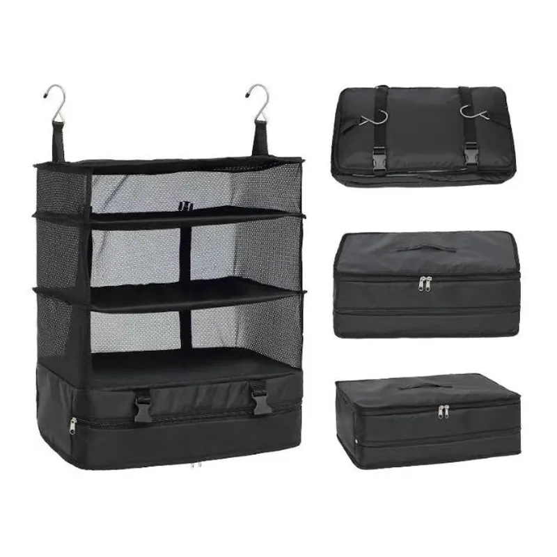 Portable Luggage System Hanging Travel Shelves 3 Layer Storage Bag Organizer