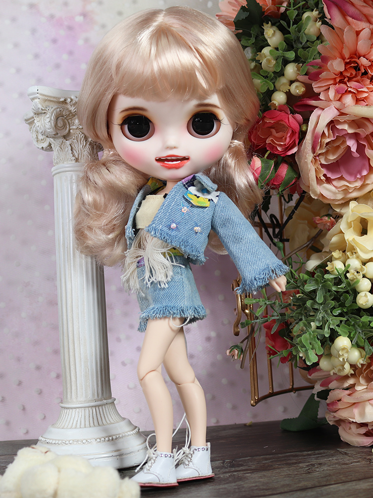 Complete set of clothes = 1 doll + clothes + shoes + wig + eye mask handmade random eyepieces + hand-painted makeup + dental installation