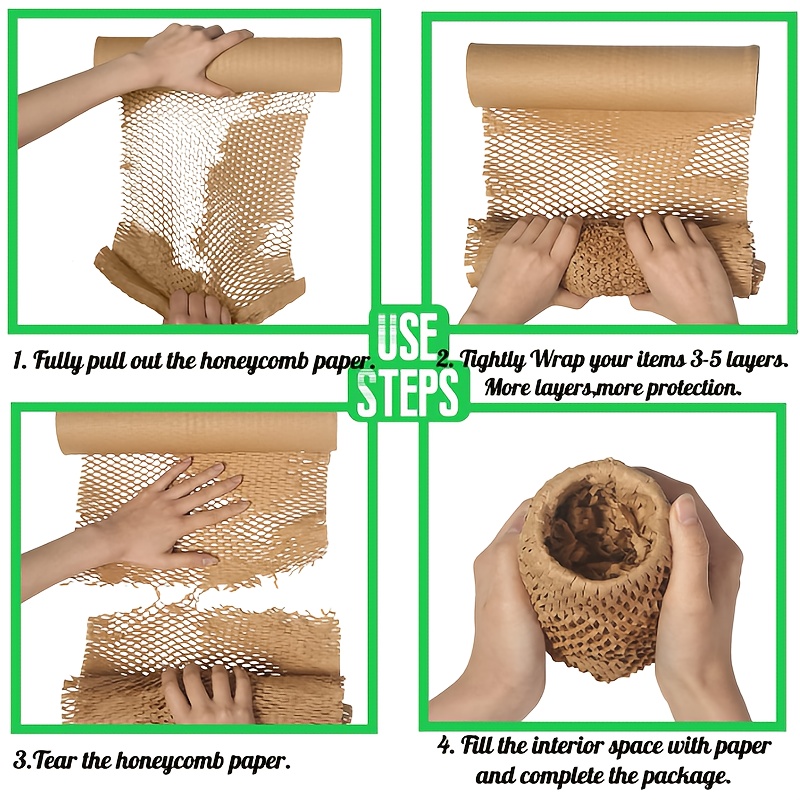 Eco-Friendly: Made from recycled paper, this honeycomb packing paper offers an environmentally responsible alternative to traditional plastic and bubble wrap.