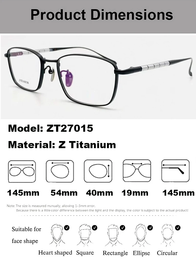 Pure Titanium Large Size Business Glasses Frames Square Men Ultralight Comfortable Eyewear Handmade Designer Eyeglasses ZT27015