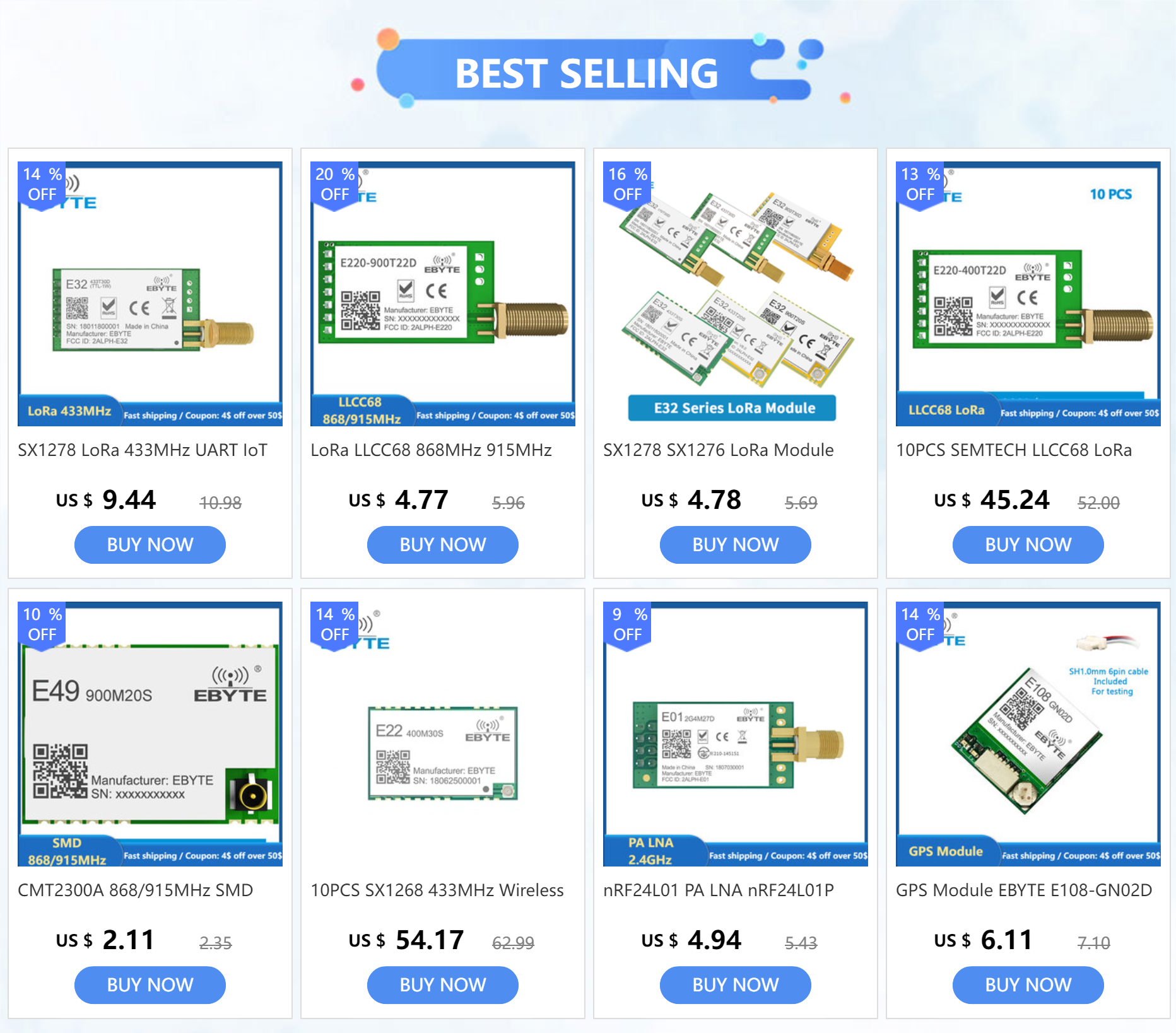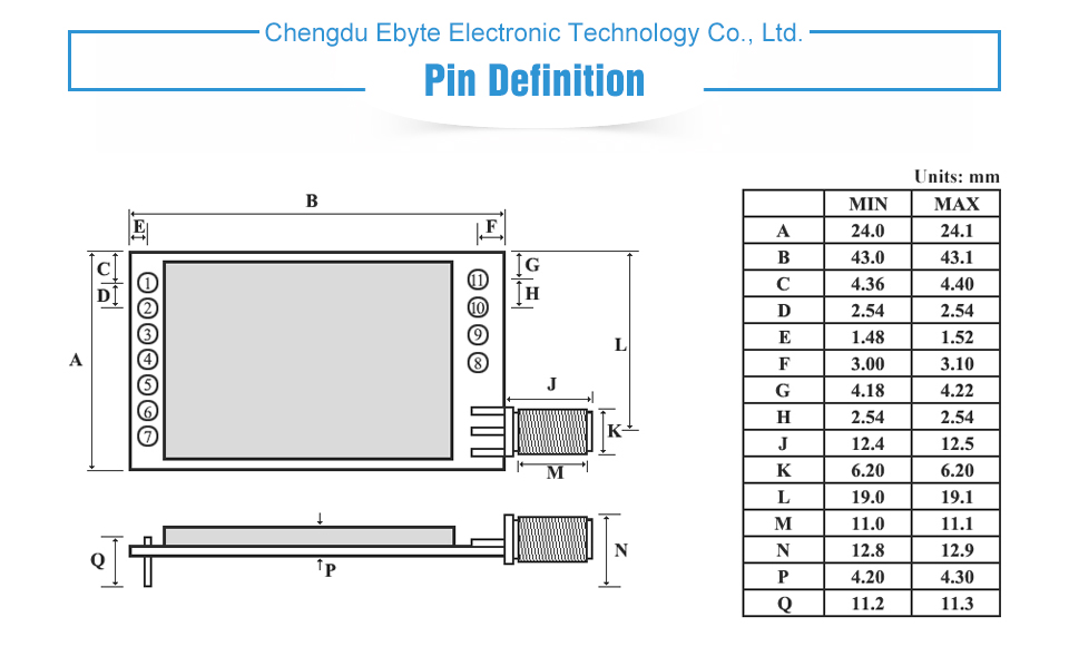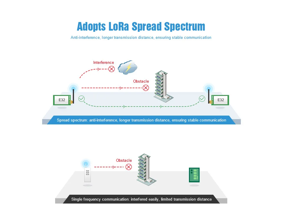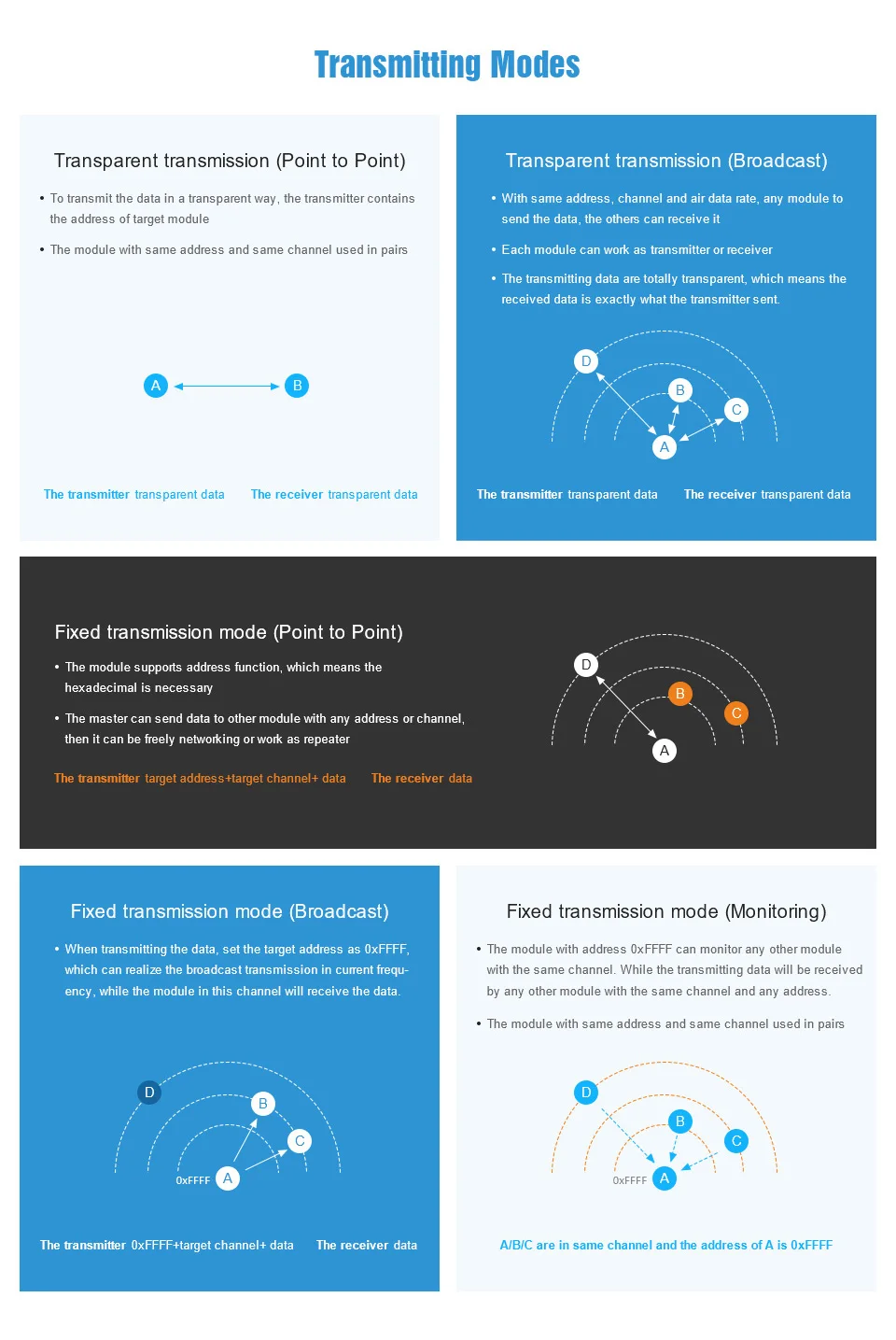 In open and clear air, with maximum power, 5dBi antenna gain, height of 2m, air data rate: 2.4kbps |