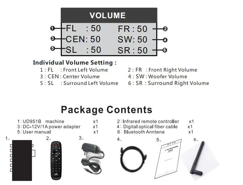 11: Support knob or remote to adjust global and mono volume, and each channelsupports 50 levels of adjustment