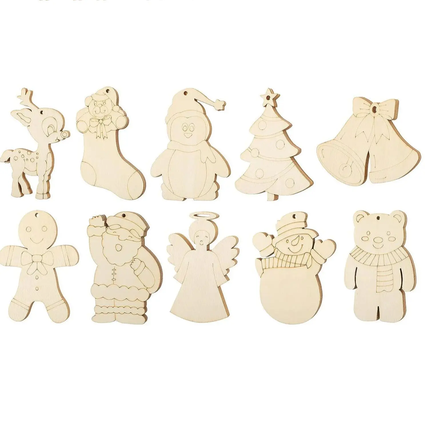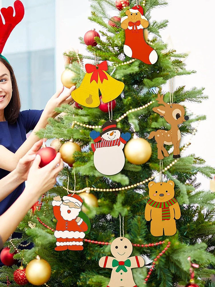 Package content: 30pcs Christmas Wooden Ornaments (10pcs for ench style)