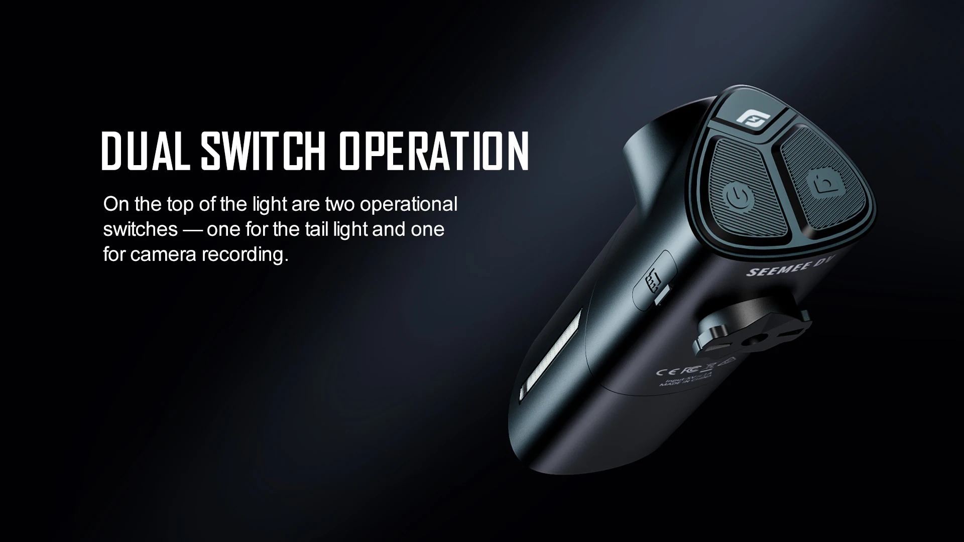 • Dual switch control, one for tail light and one for camera recording.