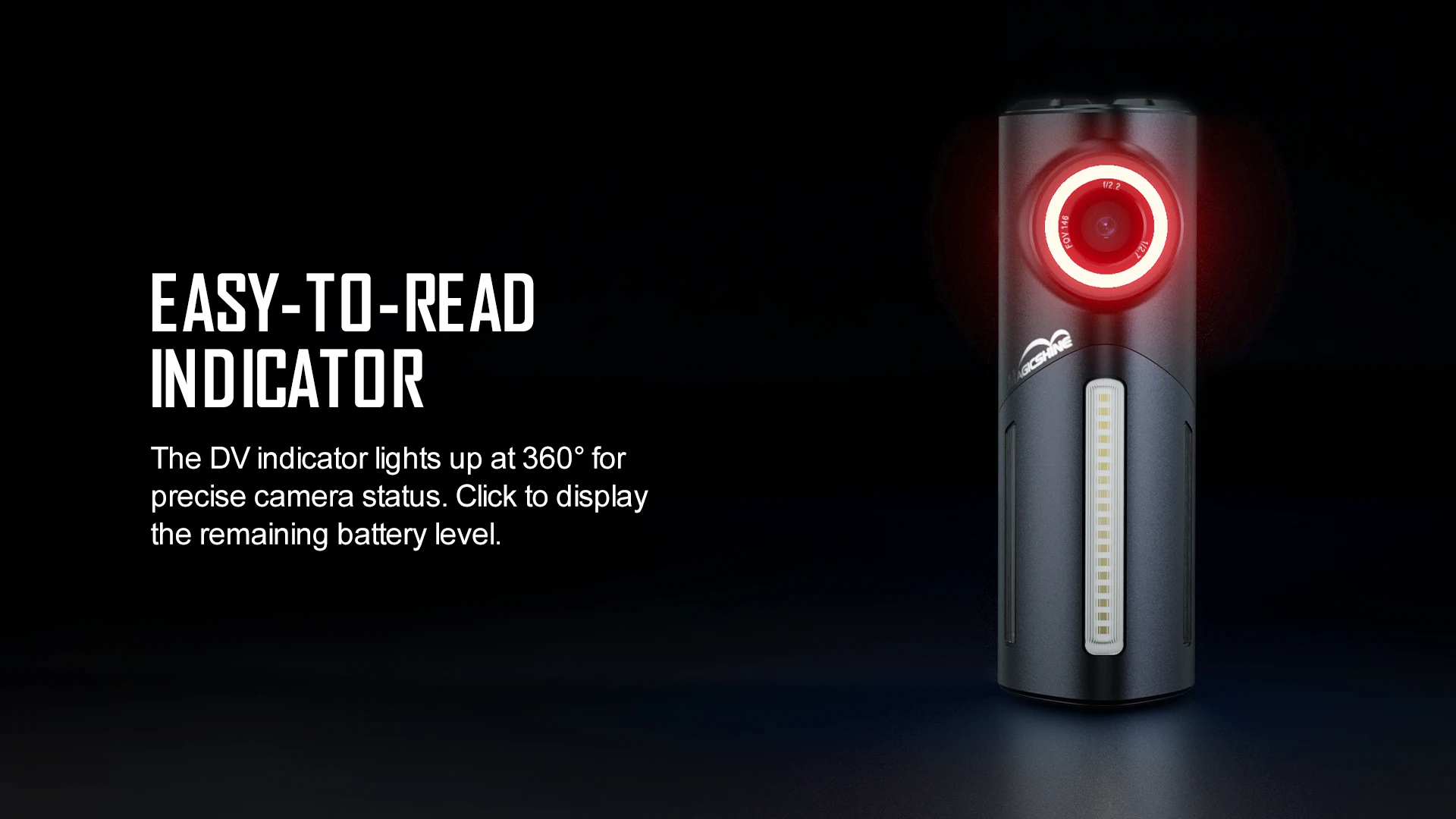 • DV indicator lights up at 360° to display the camera working status.