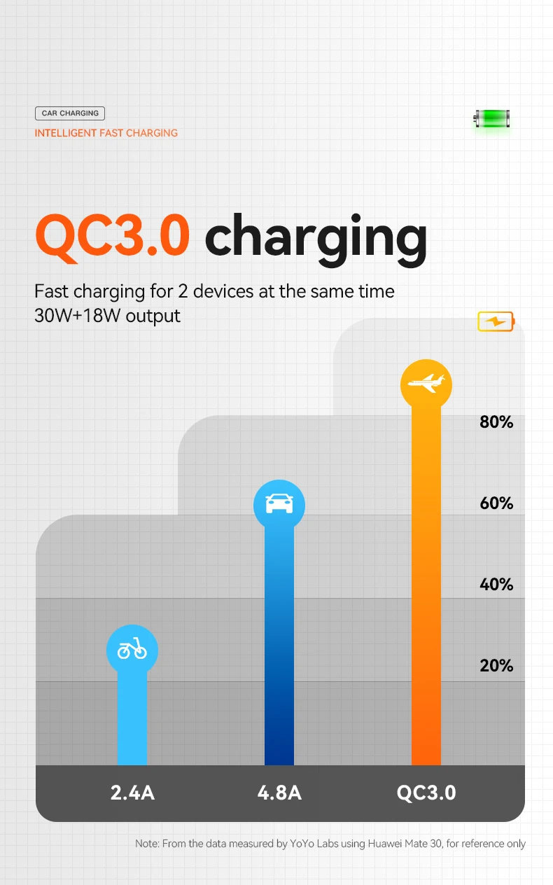 18W USB QC3.0 +PD 30W Type fast charging, can mobile phones, tablets, car driving record,navigation.Equipped with LED light, it can two phones simultaneously.