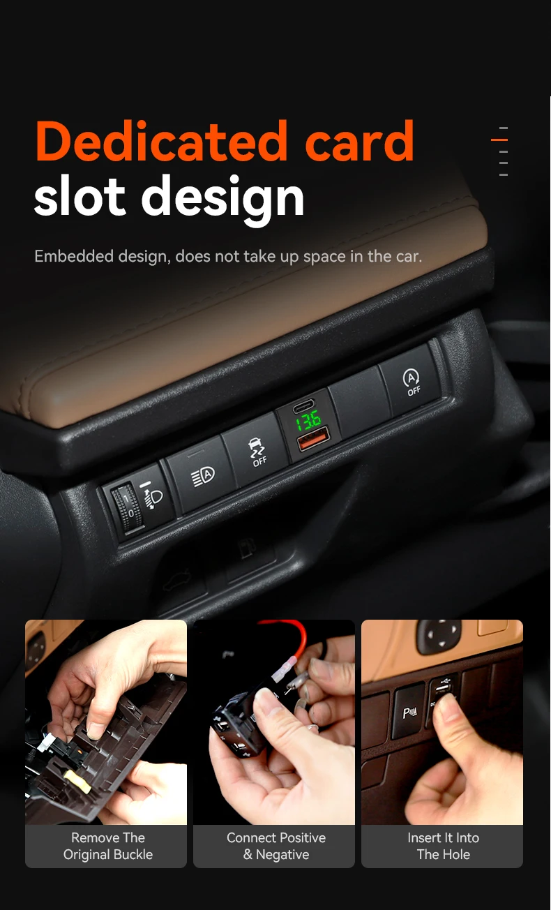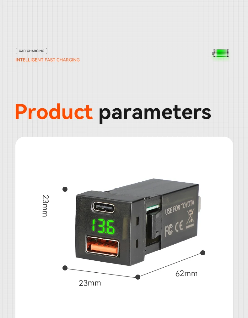 Special Features: PD+QC3.0 48W Charger Socket For Toyota