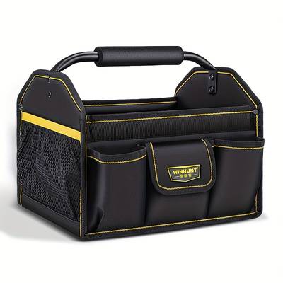 The bag's steel handle provides a sturdy grip, making it easy to carry heavy tools, while the wear-resistant fabric ensures that it will last through tough conditions. Whether you're working on-site, in your garage, or transporting tools between locations, this tool bag offers the durability and organization needed for the job.