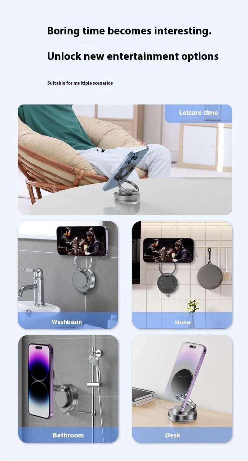 With its 360° rotation, the 360° Adjustable Vacuum Magnetic Phone Holder lets you position your phone in any direction,