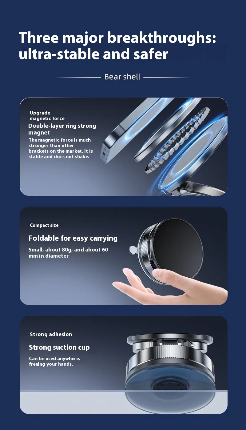 A powerful magnetic system ensures that your phone stays securely in place, even on bumpy roads or during sudden movements.