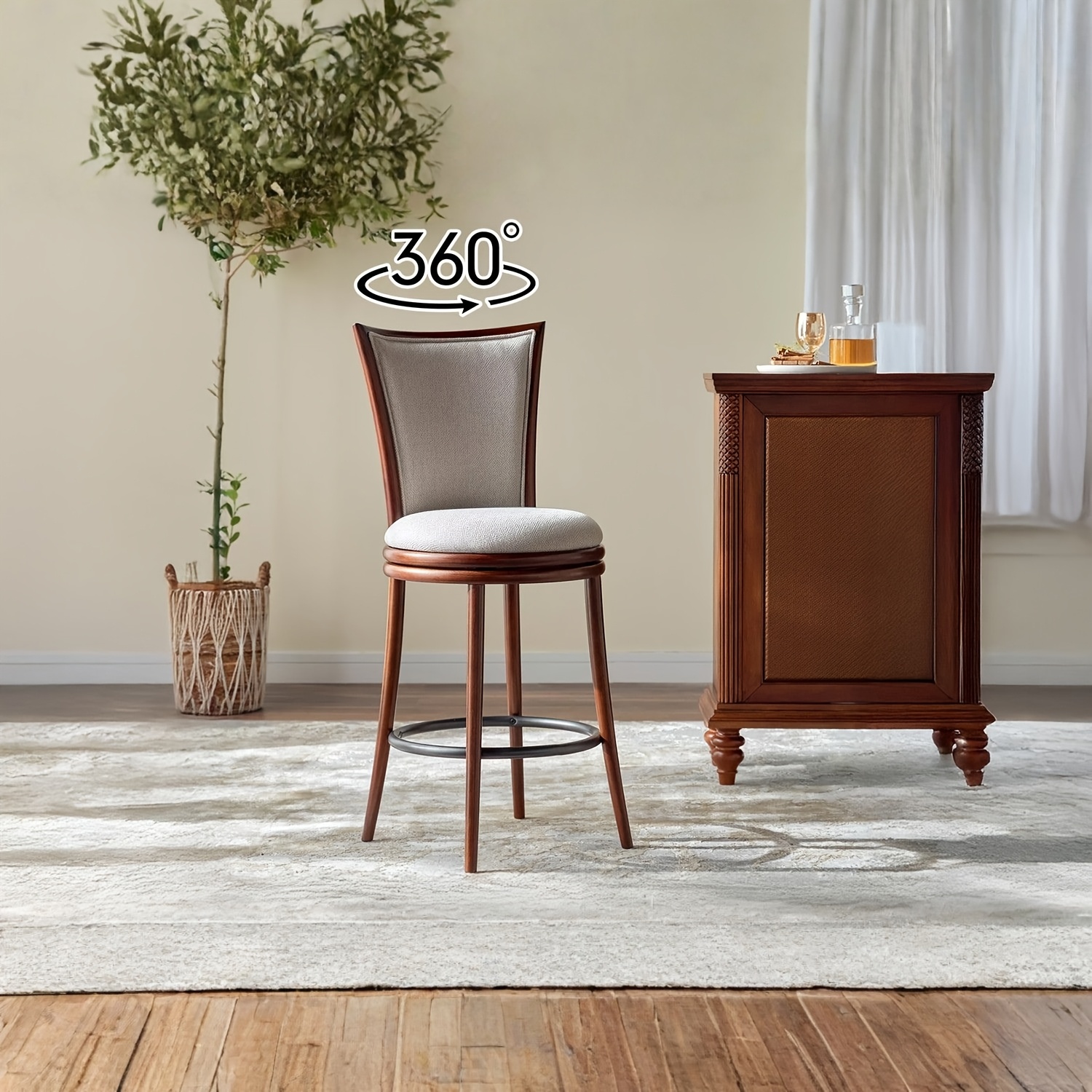 360-Degree Rotating Bar Stool – Solid Wood Construction with Cushioned Seat and Back