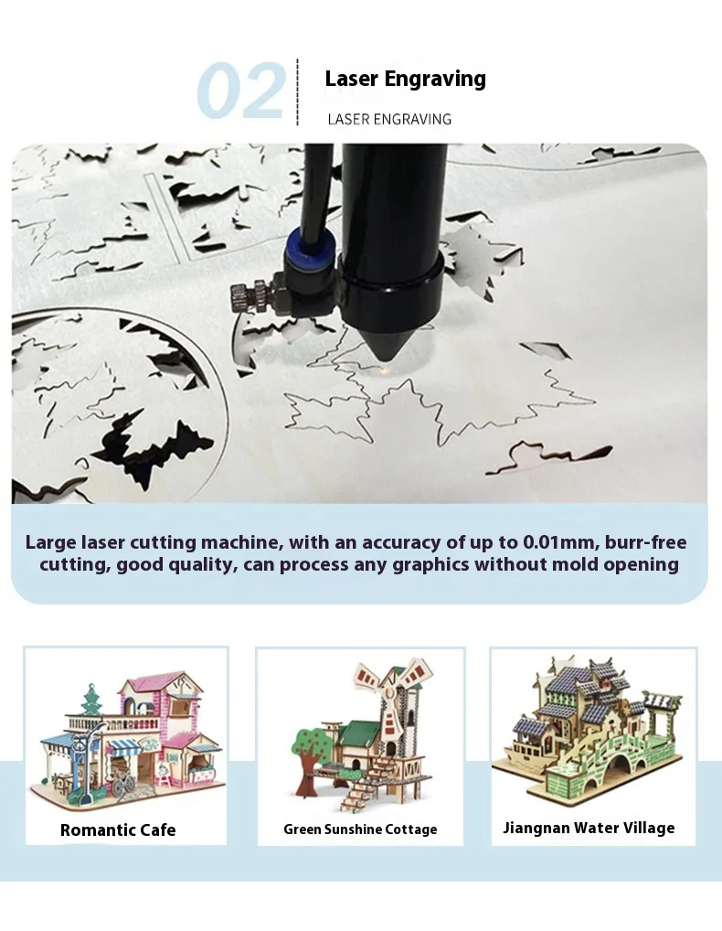 DIY Building Block Puzzle: This kit contains all the wooden pieces needed to assemble a detailed and functional 3D puzzle.