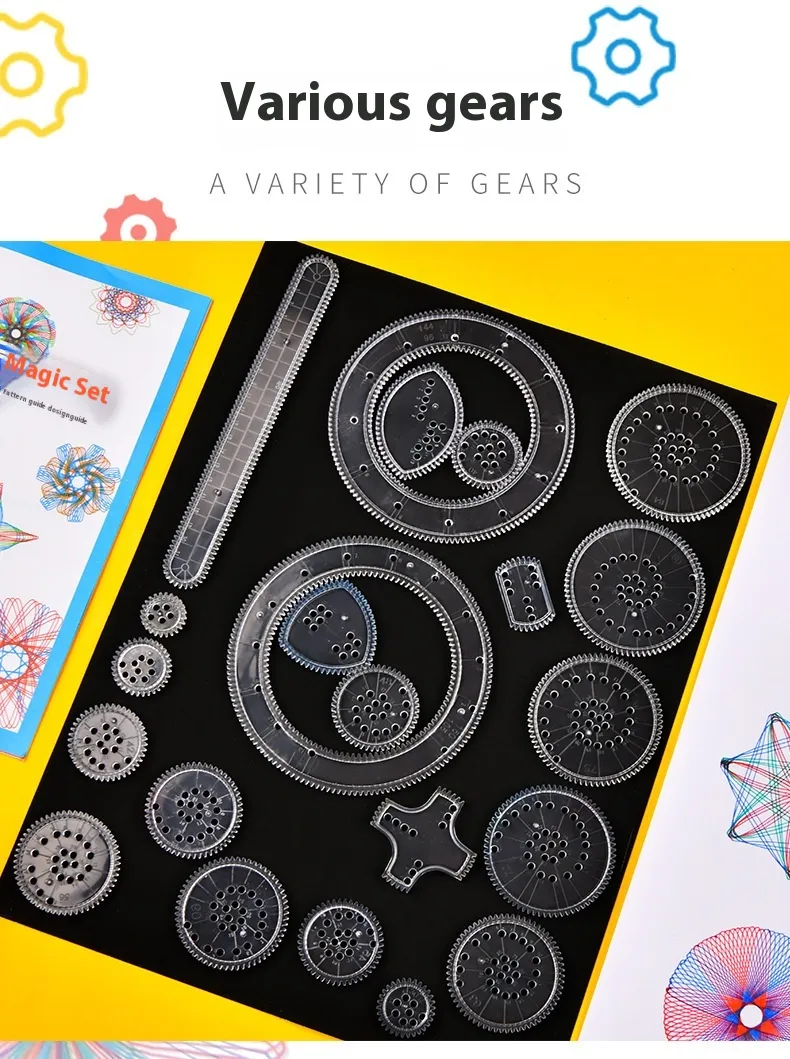 Variety of Gears and Pens: The set includes multiple gears and pens that offer different sizes and shapes for creating diverse patterns and designs.