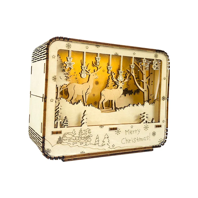 When unassembled, the puzzle looks like a flat, wooden sheet. As you follow the step-by-step instructions, the pieces interlock in three dimensions to form a shaped structure—often featuring elegant architectural details, geometric contours, or themed designs such as celestial motifs, nature scenes, or abstract art. The light element, typically an energy-efficient LED, is integrated into the structure once the assembly is complete. With the light switched on, the wooden model emits a warm, ambient glow that gently illuminates surrounding spaces and highlights the beauty of the wood grain and craftsmanship.