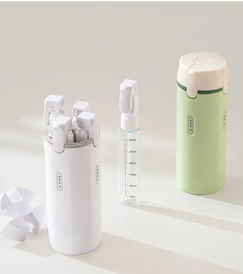 The 4-in-1 Travel Dispenser Bottle stands out because it combines organisation, safety, and ease of use in a single travel-ready solution. Instead of juggling multiple mini bottles, you get a unified system that keeps products separated and accessible.