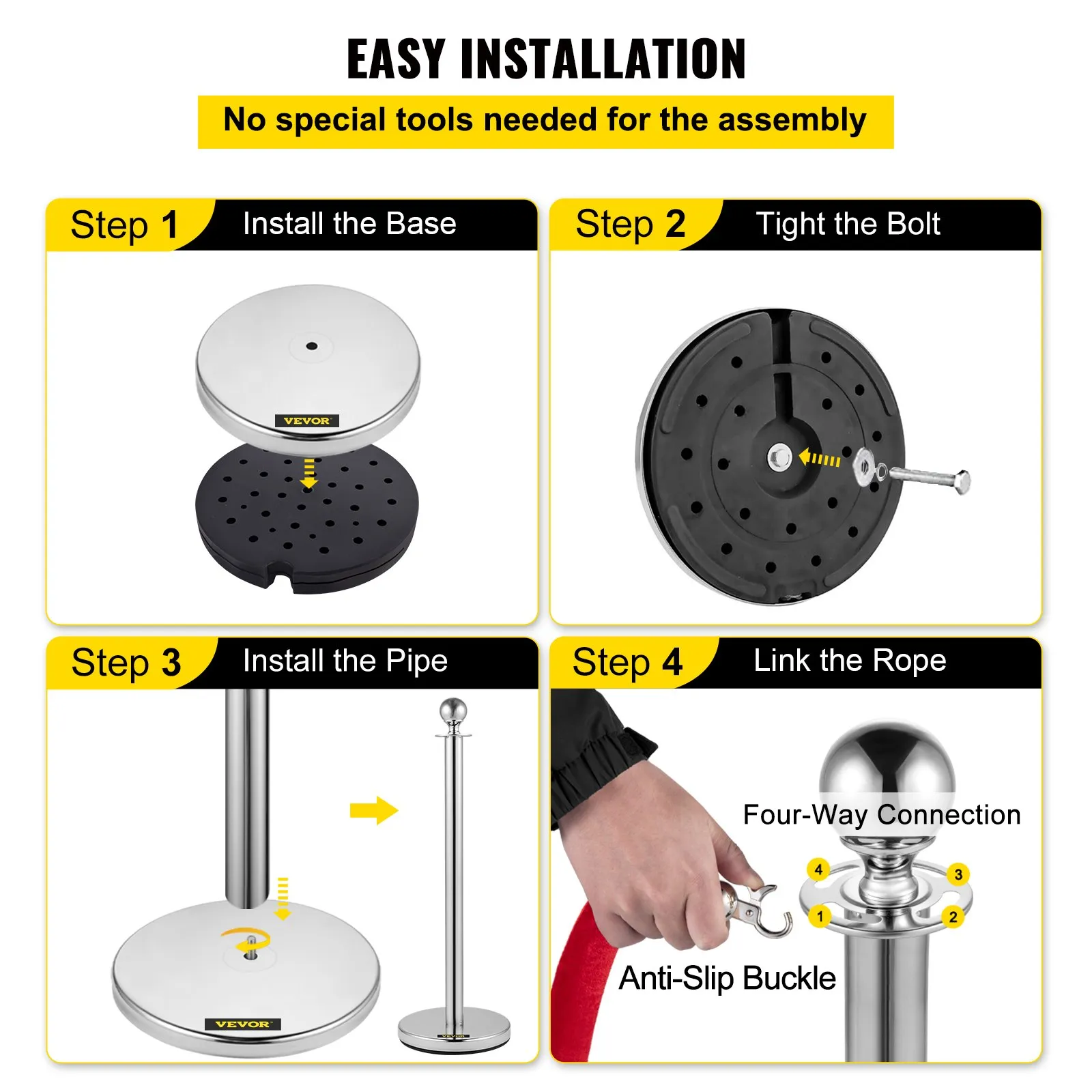 - Set of 4 Stanchions: Includes 4 silver posts and 2 red velvet ropes (1.5 m each).