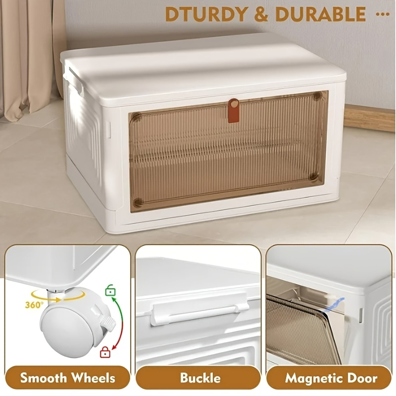 The bins are equipped with secure lids to keep your items safe from dust and dirt. The easy-to-use wheels make it simple to move the bins around your home, office, or garage. Plus, the bins are foldable, allowing for easy storage when not in use, saving you valuable space. Their stackable design allows you to maximize vertical storage without sacrificing floor space.
