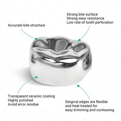 Stainless Steel Construction: Made from durable stainless steel, these crowns offer excellent strength, stability, and