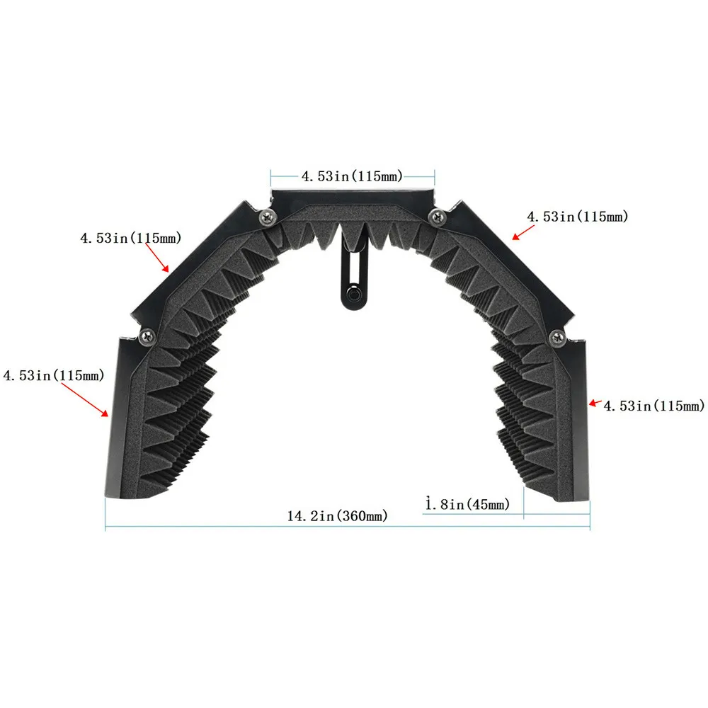 Foldable and adjustable. It can be mounted on the right microphone stand or boom.