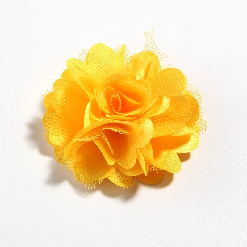 5CM 2" Fashion Mesh Silk Fabric Flowers For Hair Accessories Rosettes Satin Hair Fabric Flower For Girls Kid Head Wear