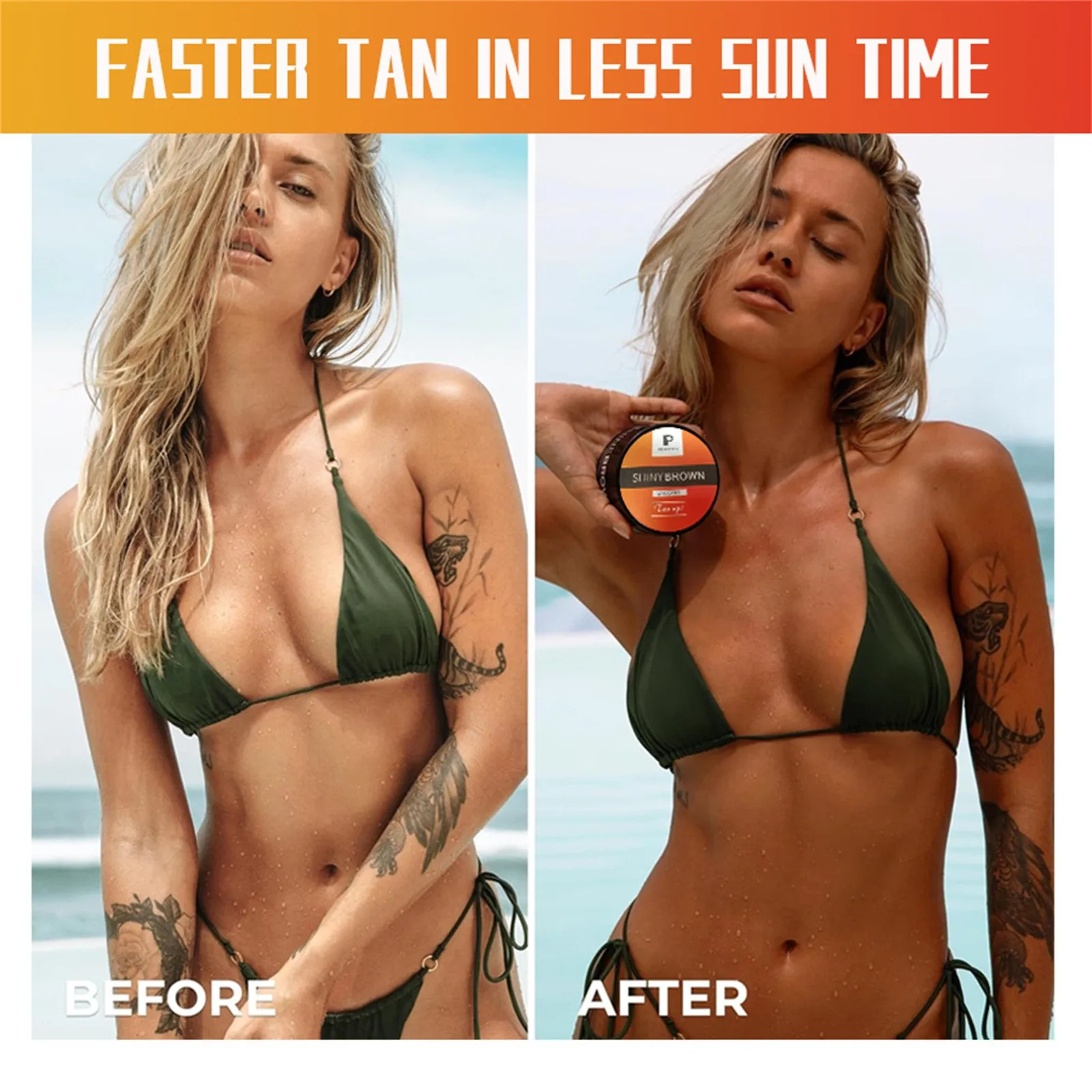 - Achieve a natural, dark and lasting Tan, reducing sunlight or sunbathing.