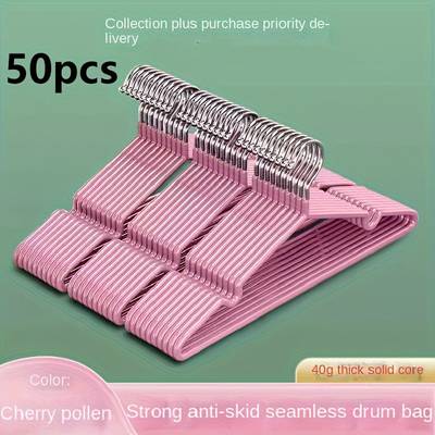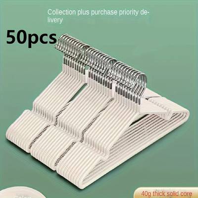 Description – 50pcs Heavy-Duty Non-Slip Metal Clothes Hangers – Stainless Steel with Seamless Drum