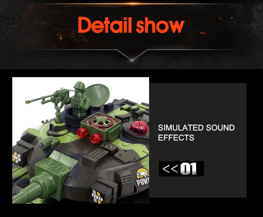 Simulation Shooting Function: The tank comes with a shooting feature, allowing it to fire simulated