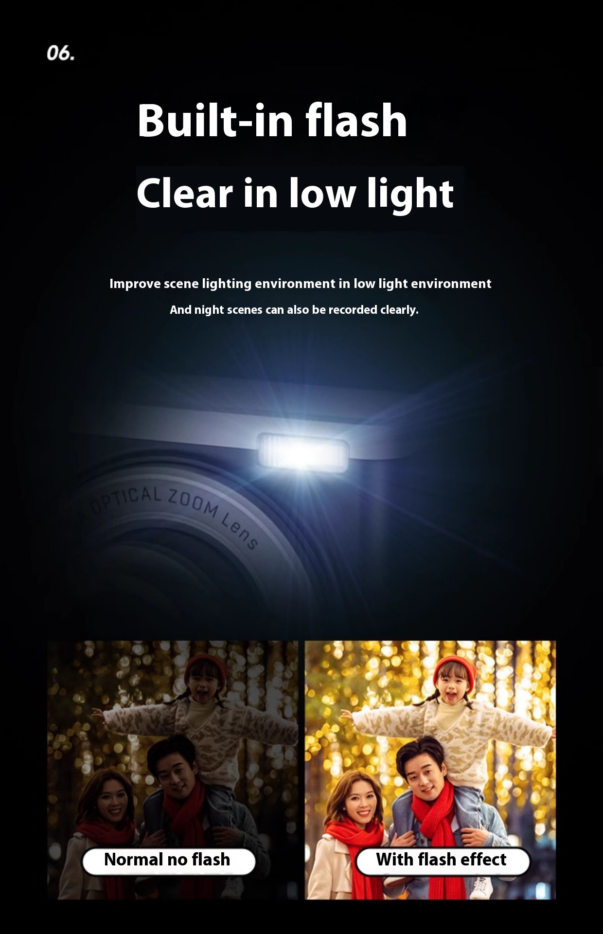 Built for versatility, the 5K HD Digital Camera is equipped with advanced features such as face detection, auto-focus, and a variety of shooting modes to accommodate different lighting and environments. The optical zoom ensures that you can capture distant objects with ease, while the anti-shake system compensates for hand movements, making it perfect for both still photography and video recording. This camera is ideal for travel, events, or sports photography, where stability and image clarity are essential for capturing fast-paced action or long-range shots.