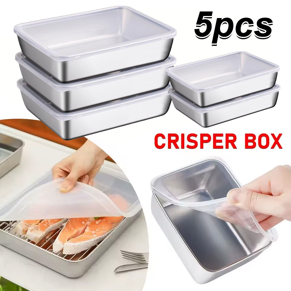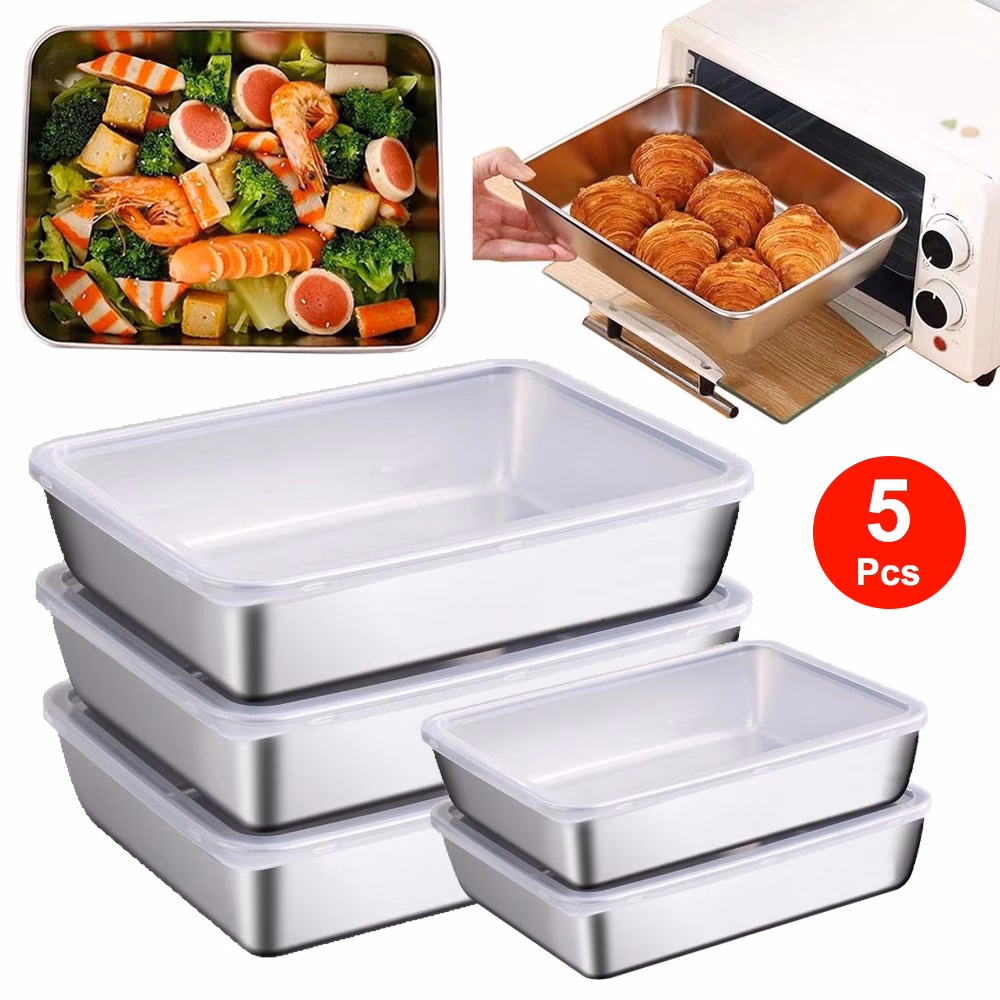 5pcs Food Storage Container, Stainless Steel with Cover Design – Suitable for Refrigerator Refrigeration, Food Preservation, Outdoor Barbecue