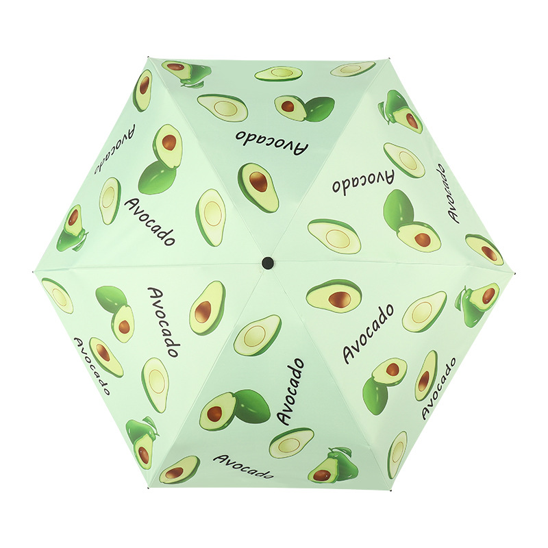 The 6-Bone Five-Fold Fruit Umbrella features a five-fold folding mechanism, allowing it to collapse into a