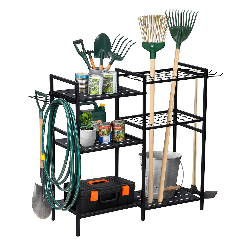 This 6 Tier Garden Tool Organizer is constructed from sturdy metal, offering long-lasting support and durability. The six tiers provide ample space for storing a variety of garden tools, cleaning supplies, and other items, helping you keep your yard, shed, or garage organized and accessible. The open design of the shelves allows for easy visibility and quick access to tools, while the heavy-duty metal frame ensures that the organizer can handle even the heaviest items.