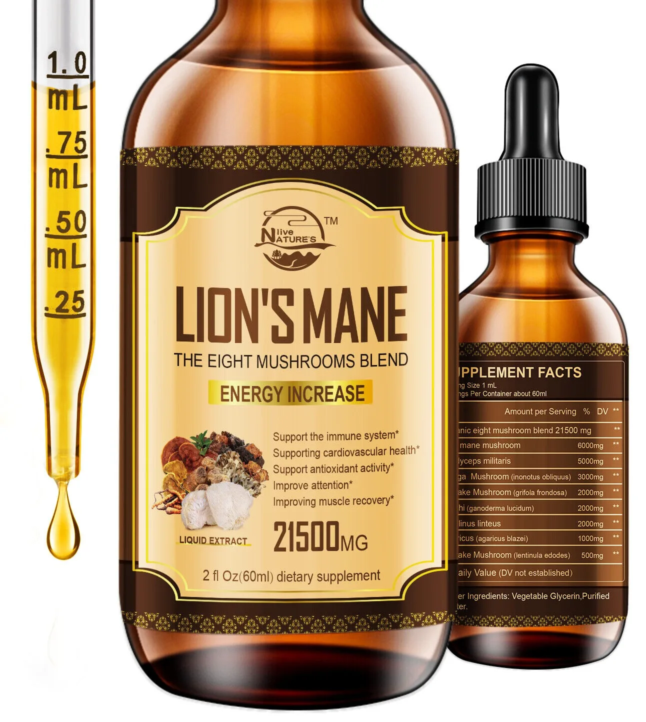 The 60ml Lion’s Mane, Chaga Mushroom Complex Reishi Extract Liquid Herbal Drops is a potent blend of three of the most