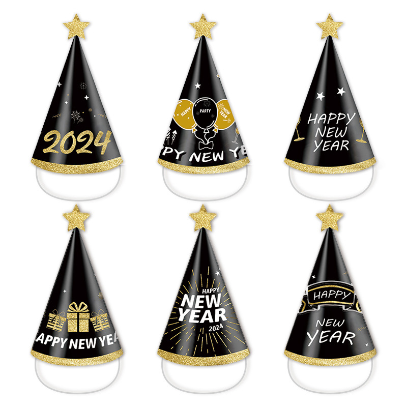 6pcs Happy New Year 2024 Theme Paper Hat Party Decoration Photo Props
