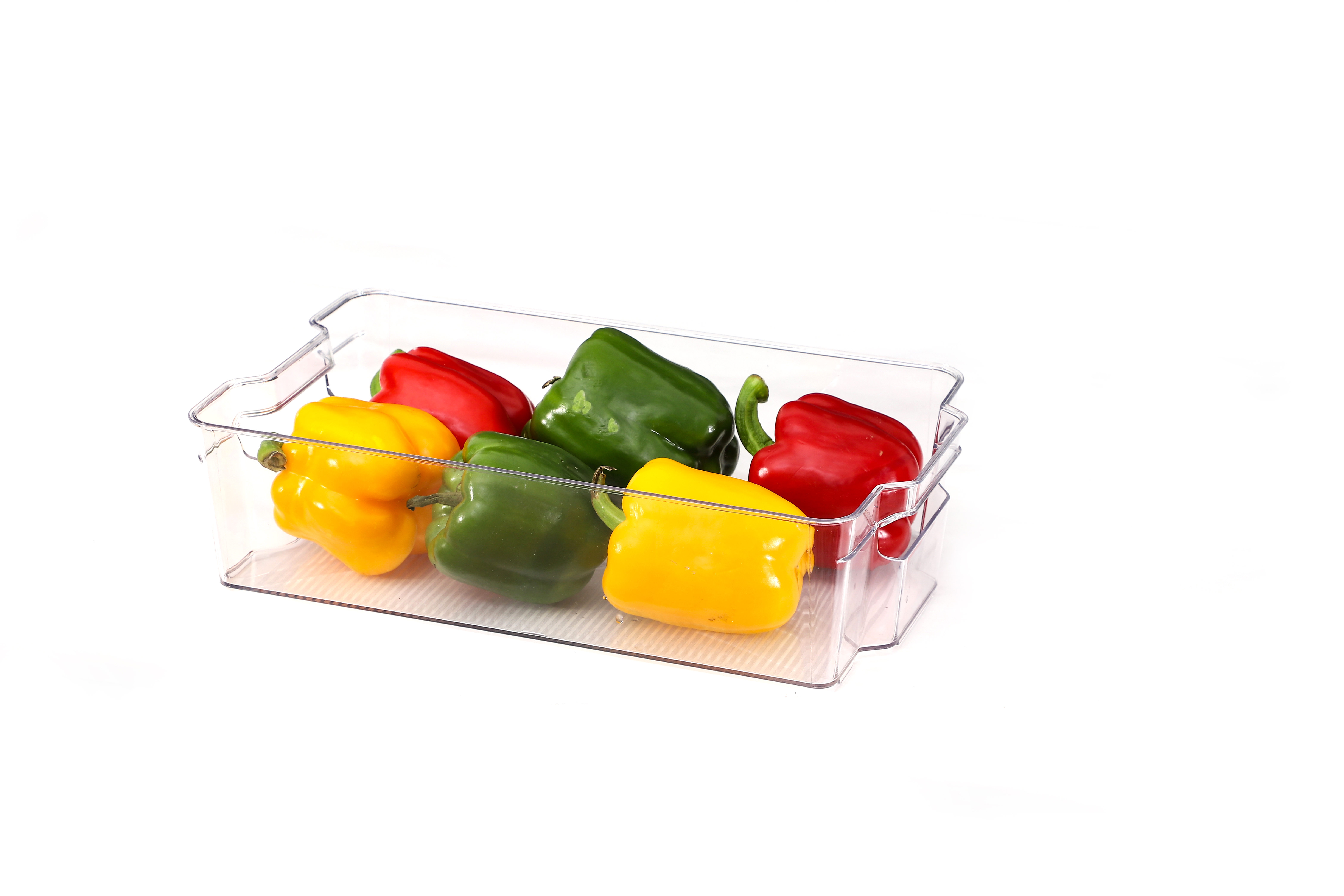 Made from durable, recyclable plastic, this fridge bin set is an eco-friendly storage solution for your home. Reduce your reliance on single-use plastic bags and containers by using these reusable bins for organizing your food items.