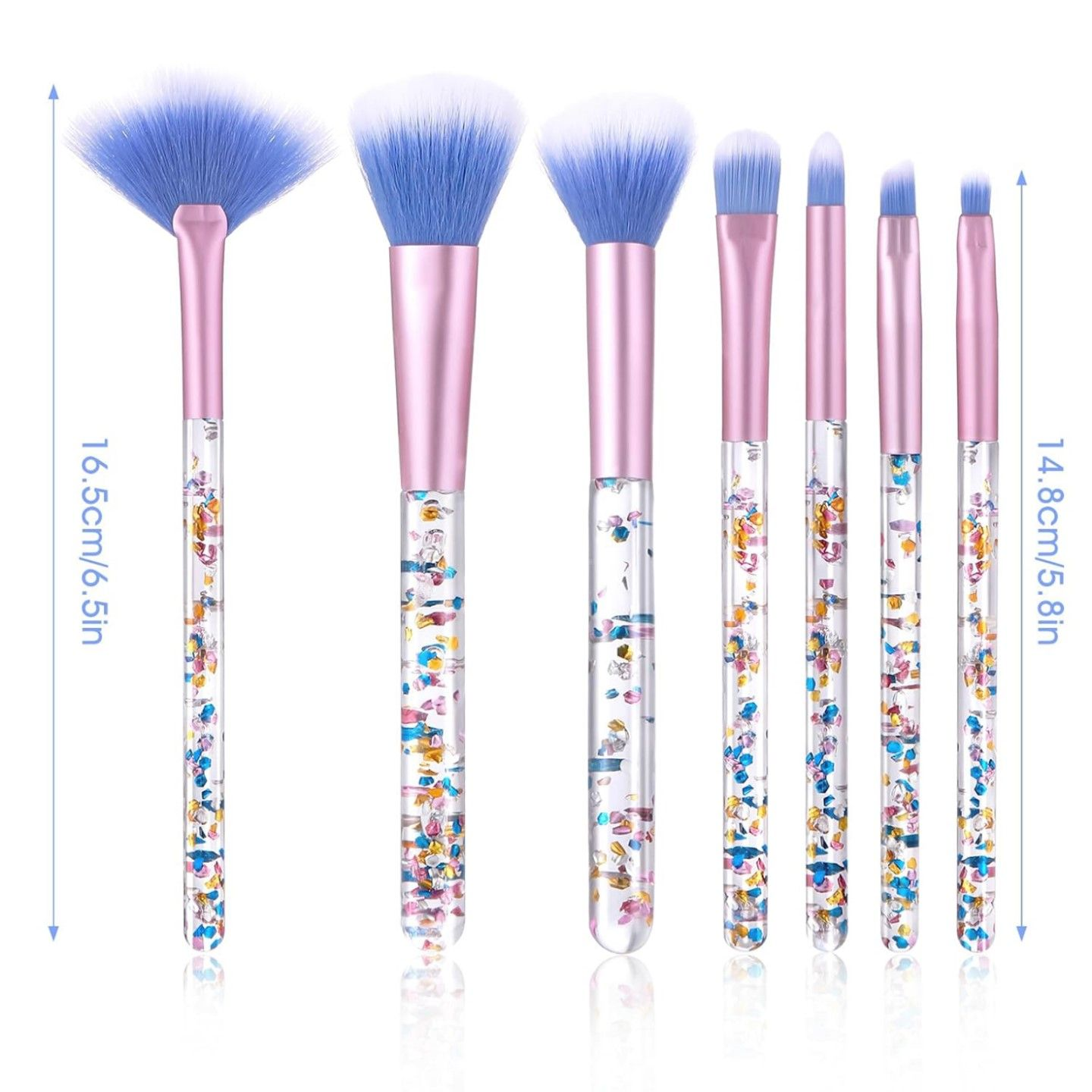 The set includes essential brushes for all your makeup needs, including foundation, powder, blush, contour, and eye makeup. Whether you're creating everyday looks or dramatic styles, these brushes offer precision and versatility. The lightweight, quicksand-filled handles are not only eye-catching but also provide a comfortable grip, making application easy and enjoyable.