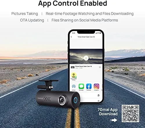 Built-in WiFi and APP Control:With built-in WiFi, it can connect to 70mai APP, which simply allows you to watch real-time images, play